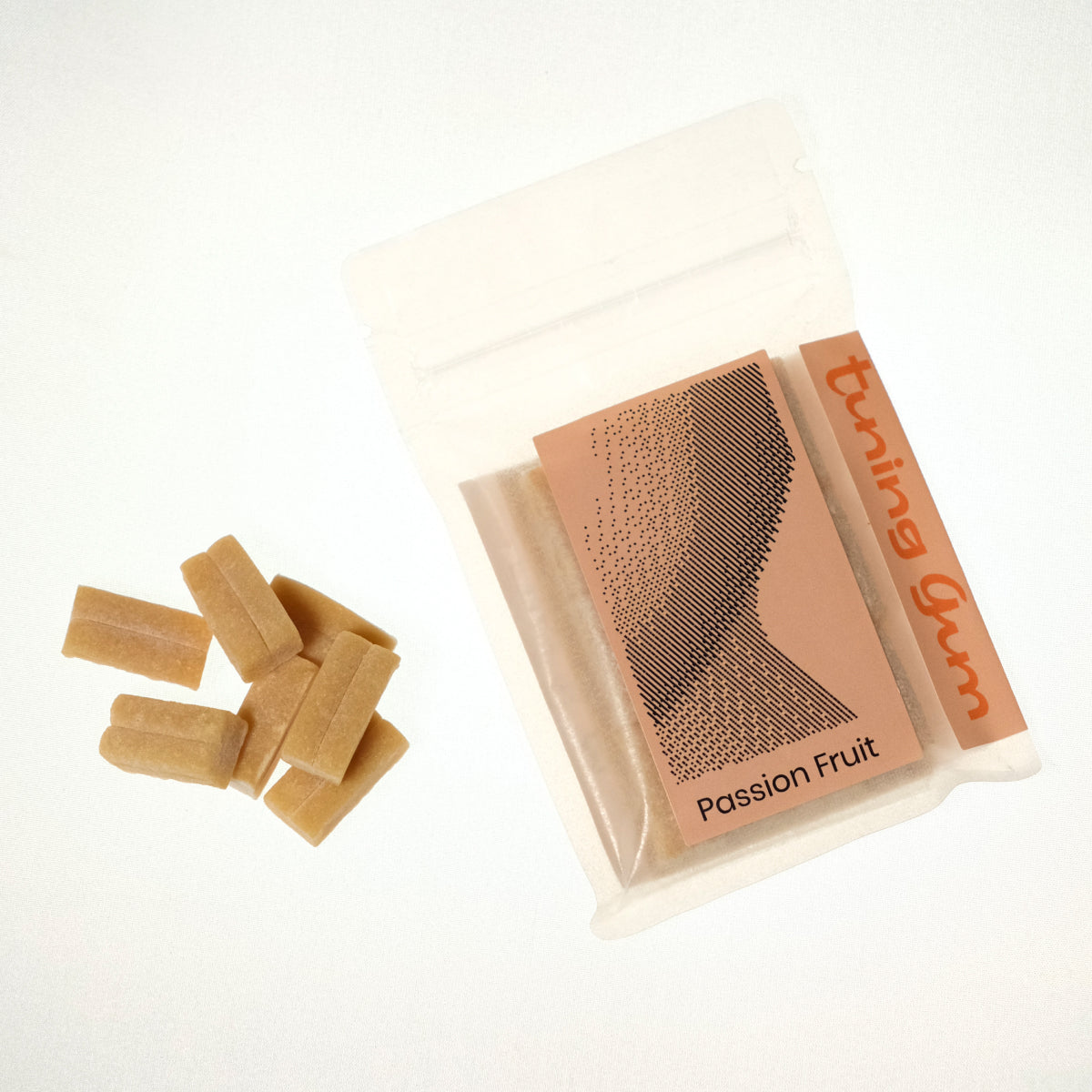 パッションフルーツ特有の豊かな香りと複雑な甘味、適度な酸味が瑞々しい果実のようなフレーバーです。原材料には北海道産の有機てんさい糖を使用することで果実味を引き立て、甘ったるい不快感を残さずに噛み続けられる設計にしました。一息つきたい時、甘いものを食べたい時、お子様のおやつ代わりにもおすすめです。